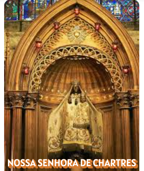 O nome Chartres remete ao lugar chamado "Carnatum", onde se venerava uma divindade celta. Quando o Cristianismo chegou ao local, adaptou os ritos celtas à fé cristã. A imagem venerada permaneceu no local: uma mulher com uma criança ao colo. No entanto, passou a ser venerada como "Nossa Senhora sob a terra" e logo depois "Nossa Senhora de Chartres". Durante a Revolução Francesa (1789), a imagem foi queimada, sendo substituída por uma imagem da Virgem Maria, no século XIX. O local de culto – uma gruta – existe há séculos, e a imagem celta já aí era venerada quando Nossa Senhora vivia em Nazaré. Por esse motivo, a igreja de Chartres é considerada a mais antiga de França, e é hoje a catedral mais sumptuosa e o santuário mariano mais bonito do país, construído em 743.